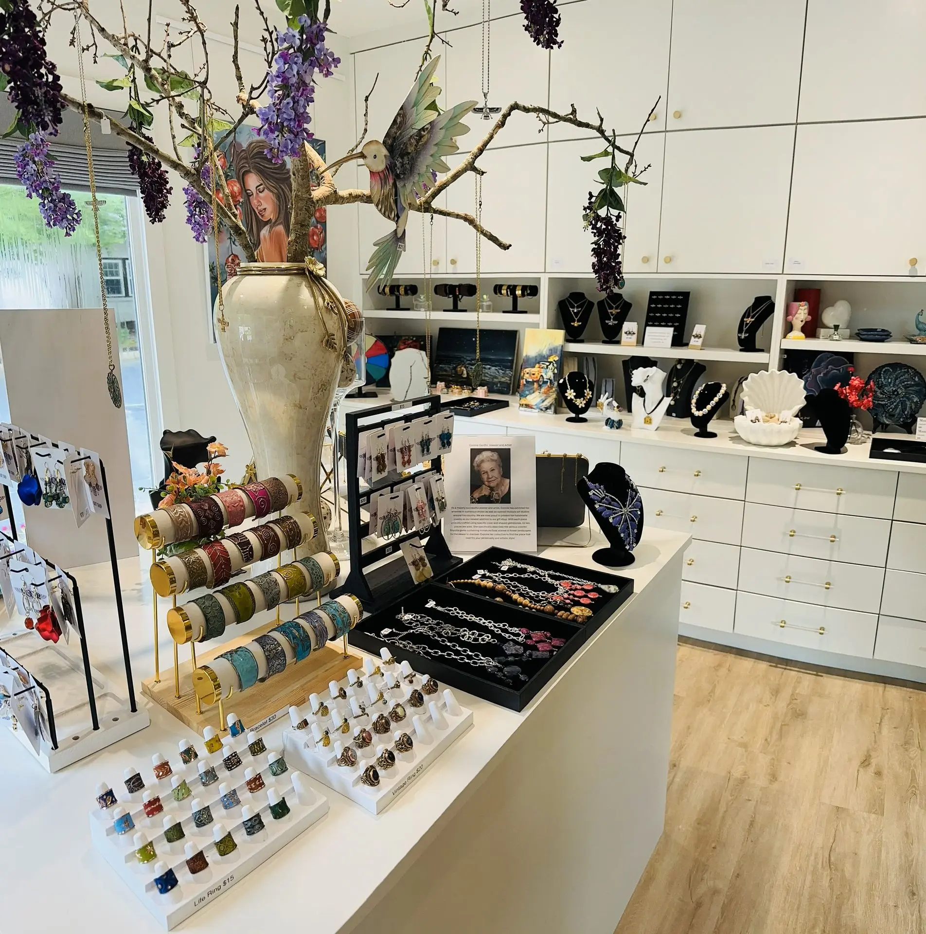 Our gallery’s gift shop features a curated collection of handcrafted treasures, including prints, jewelry, ideal for taking home a touch of creativity.